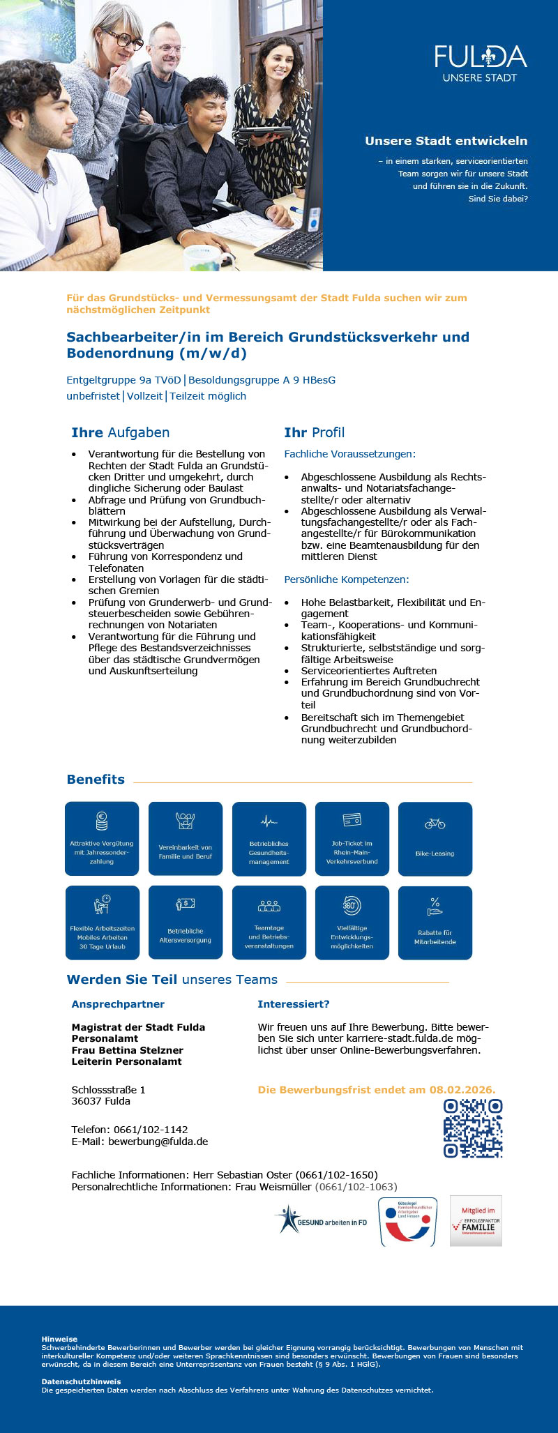 < Sachbearbeiter/in (m/w/d) im Bereich Grundstücksverkehr und Bodenordnung Teilzeit