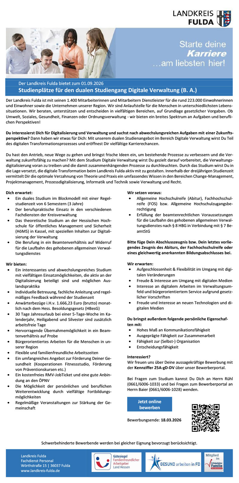 Studenten/innen (m/w/d) für den dualen Studiengang Public Administration (B. A.) >